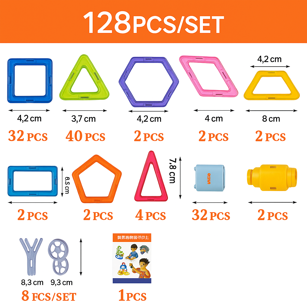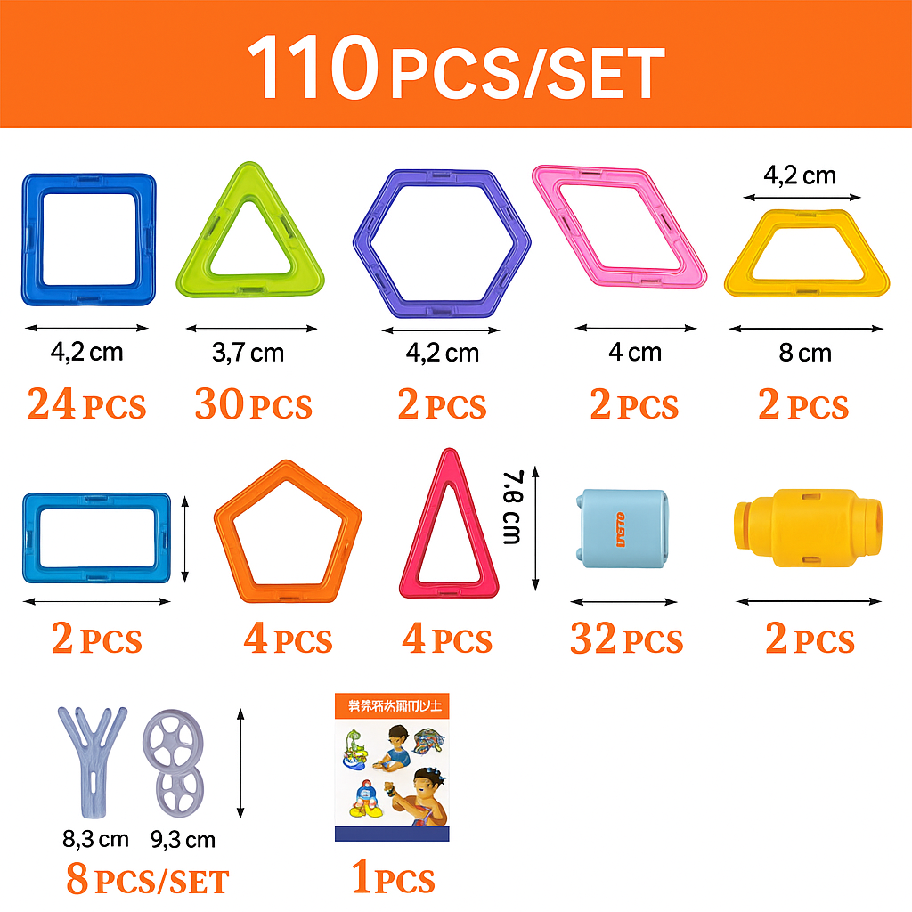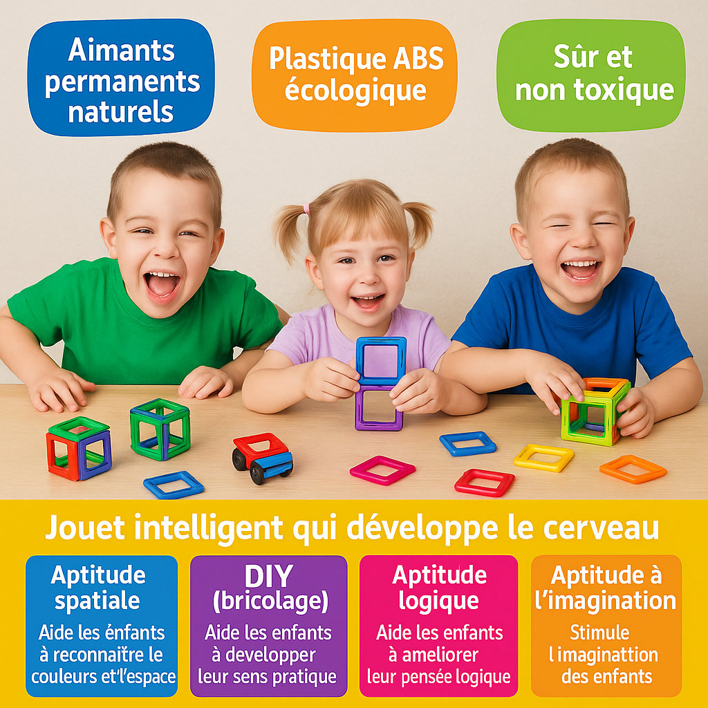 Matériaux : Plastique ABS non toxique + aimants encapsulés (sans risque d’ingestion)