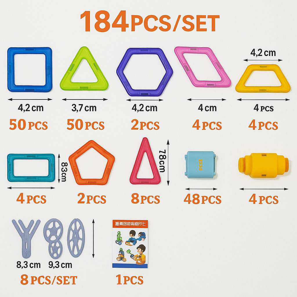Avec ConstruMag, offrez à votre enfant bien plus qu’un simple jouet. Ce set de blocs de construction magnétiques colorés permet de créer, déconstruire et recommencer à l’infini. Grâce à des aimants intégrés sécurisés, les pièces s’assemblent facilement pour former des maisons, des animaux, des véhicules, et même des structures futuristes. Conçu pour stimuler l’éveil, la créativité et la coordination œil-main, ce jeu est parfait pour les enfants de 3 à 10 ans. Approuvé par les parents, adoré par les enfants !